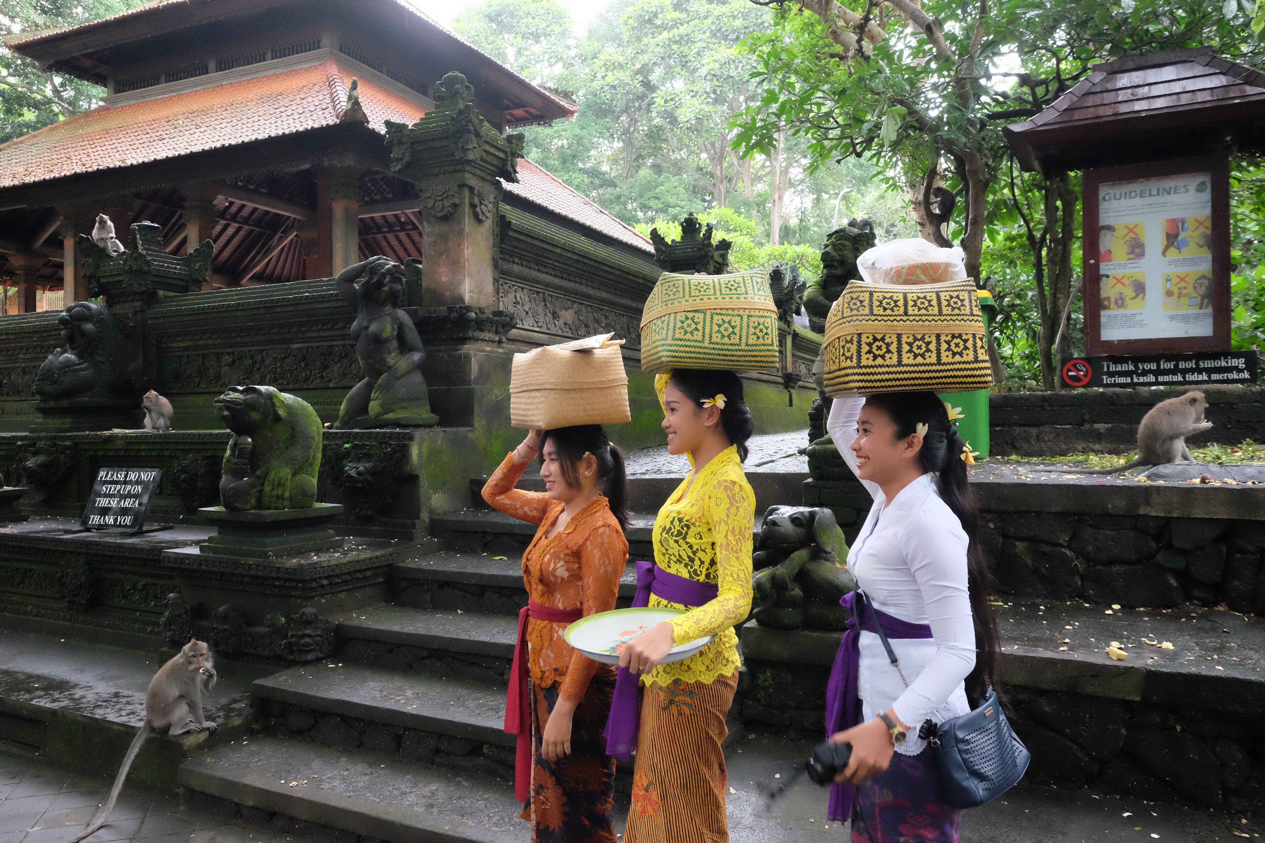 The Sacred Monkey Forest complex is about 12.5 hectares area consists of about 700 monkeys, and various types of trees and plants, also temples.