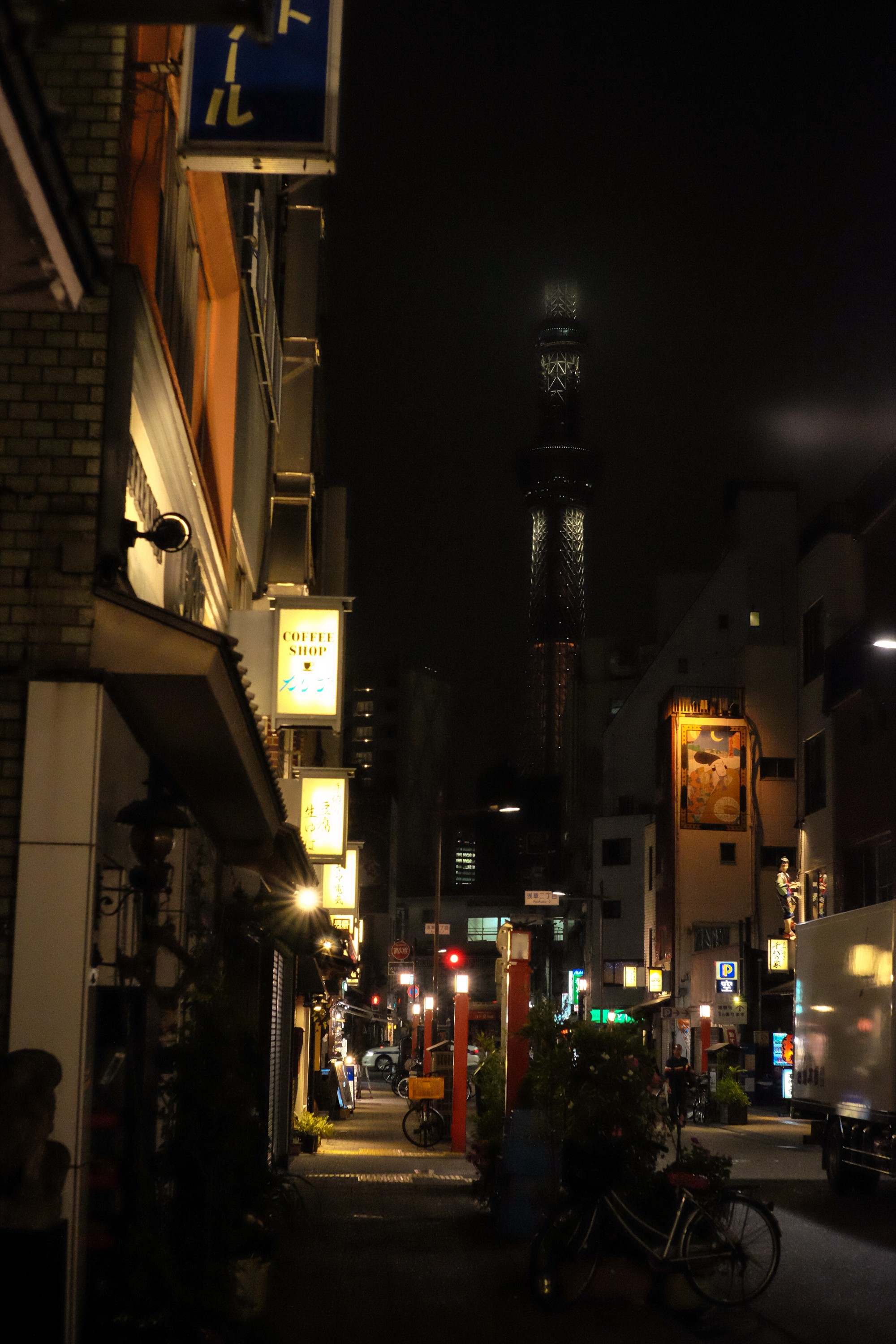 And if the weather is clear, you can see the Tokyo Skytree Tower from this alley.