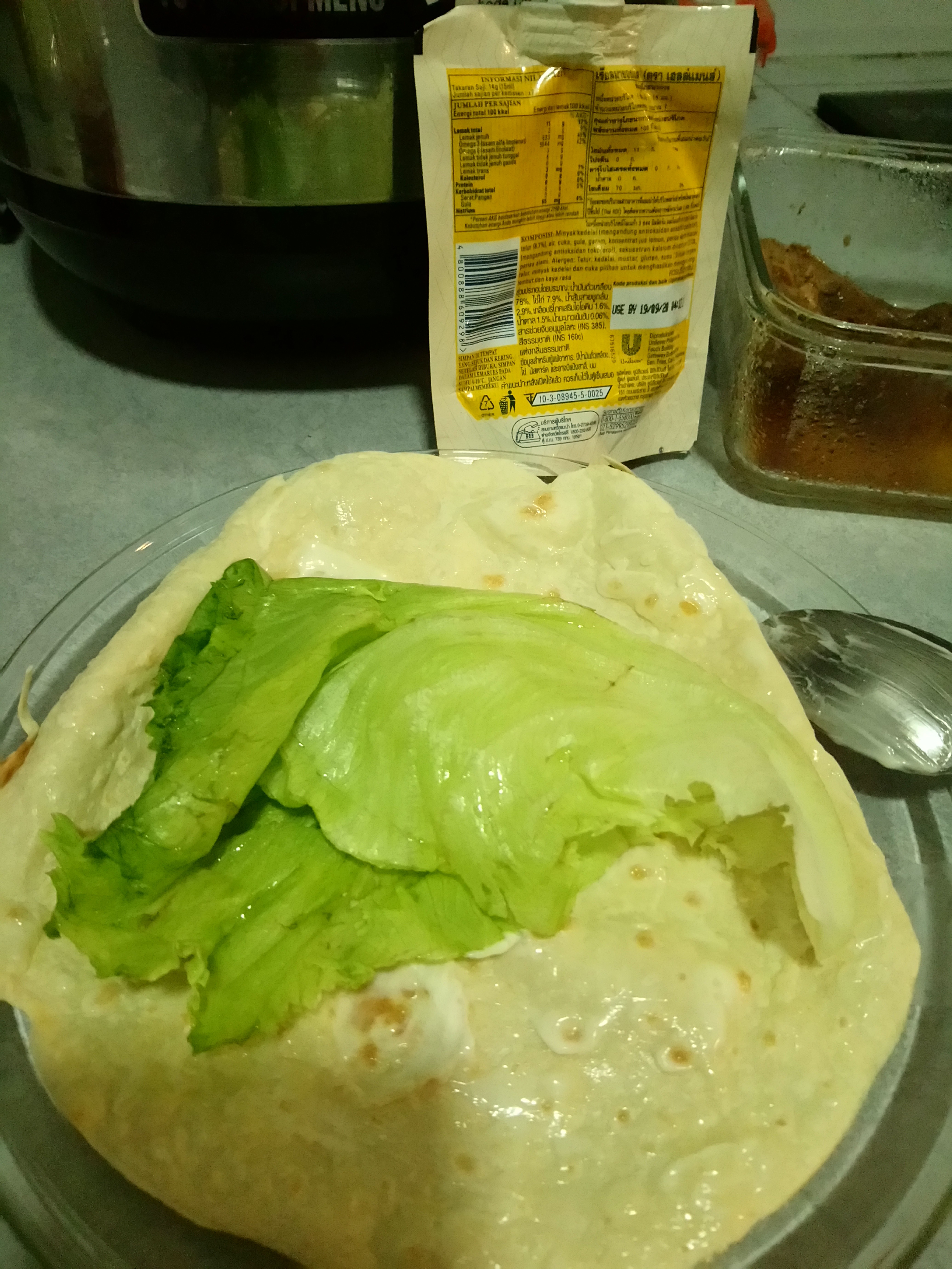 Then spread the mayonnaise into the tortilla