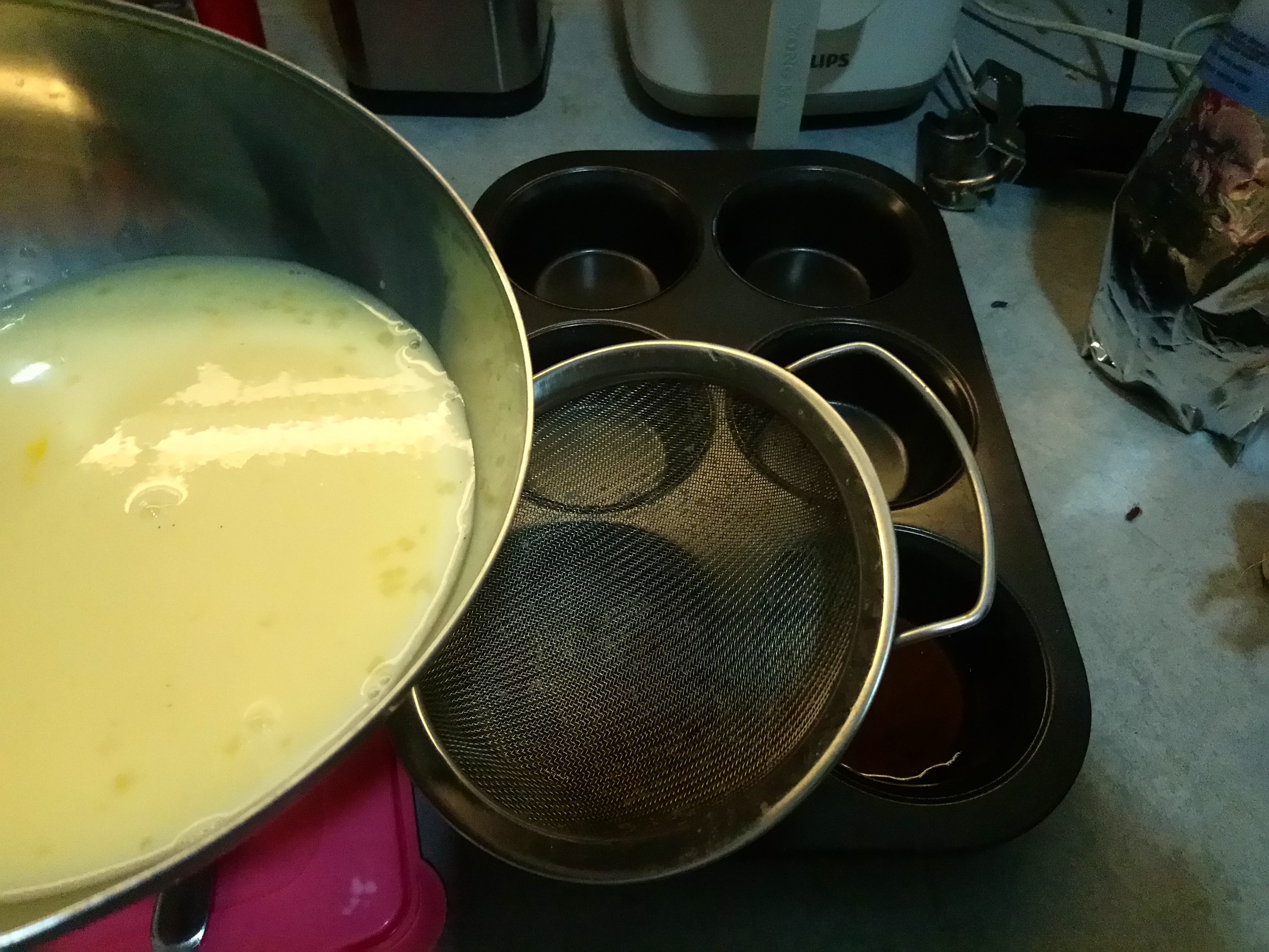 After that you can pour the egg mixture into the caramel using sieve.