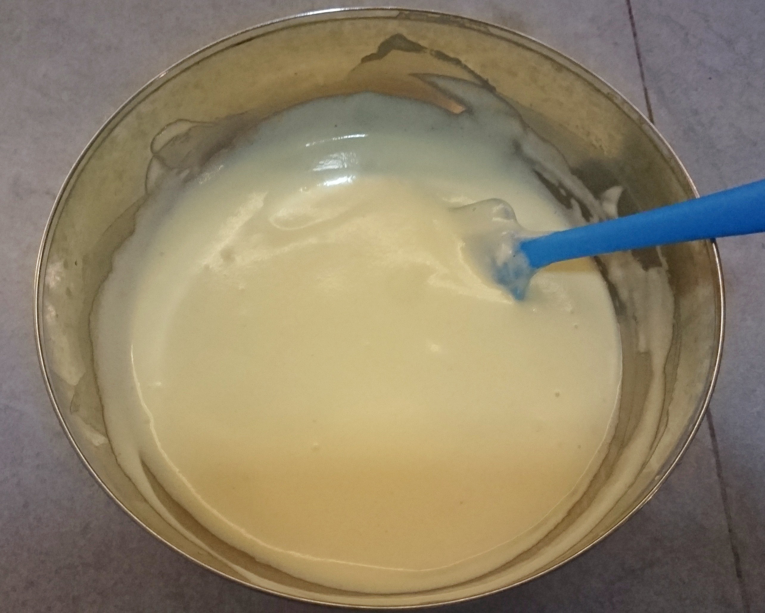 - Heat the unsalted butter and milk on the pan, or use microwave to melted the butter with the milk, then mix well with the flour